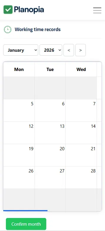 Yes, Planopia enables time tracking according to typical requirements. The app supports the process of work hours registration, overtime tracking, report generation, and data export to PDF and Excel needed for documentation.Learn more about electronic time tracking.