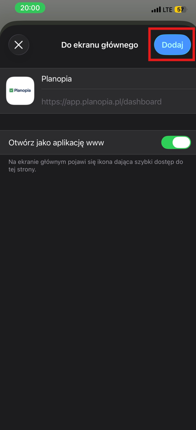 This option will allow you to add Planopia directly to your iPhone's home screen as an app.