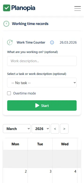 Yes — you get a clear view of worked hours and overtime in the calendar and reports.