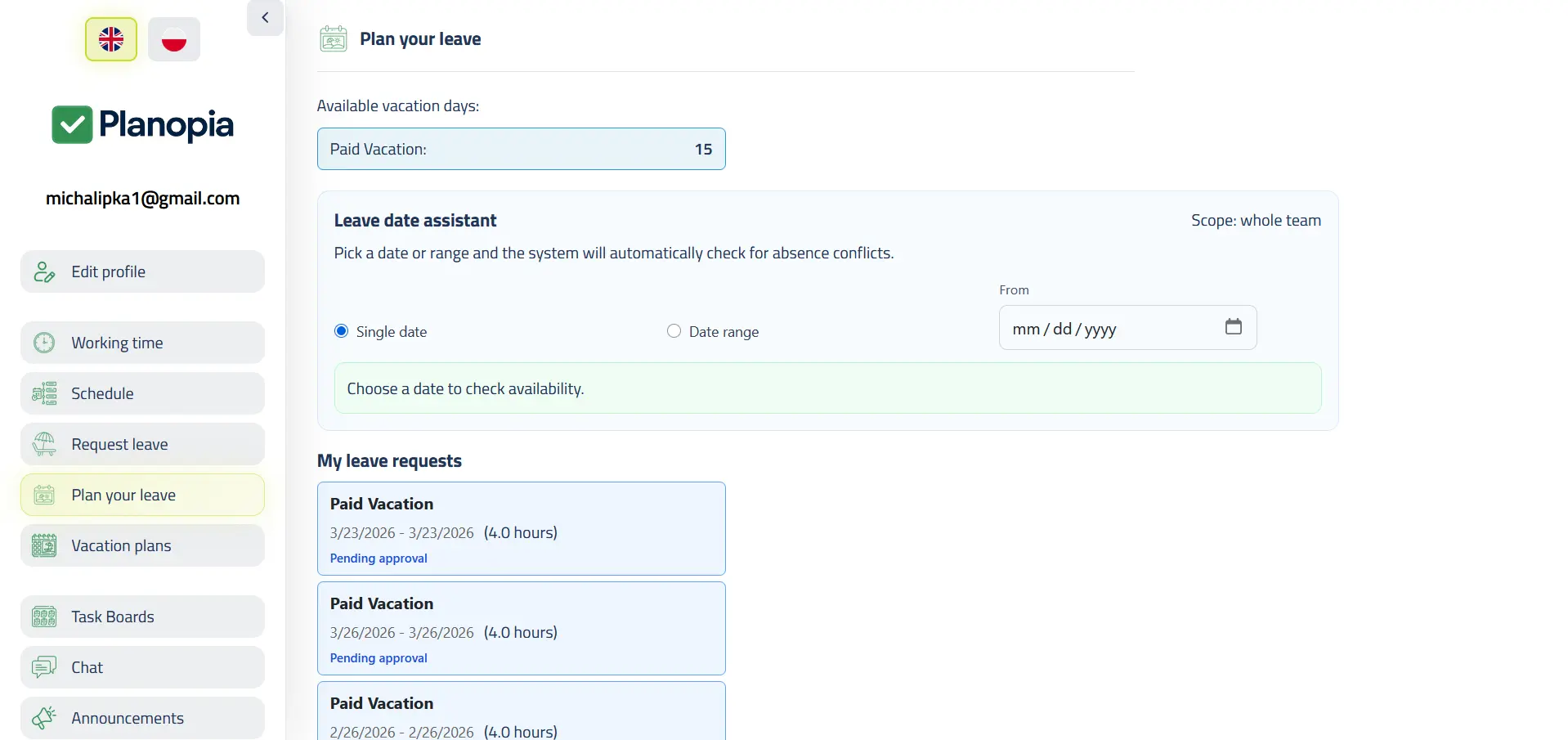 Planopia is not only leave and time tracking — it is a tool your team uses daily to plan work, communicate, and close out jobs.